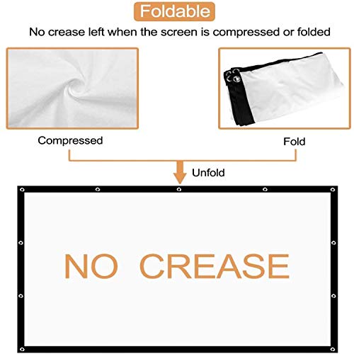 ★【Facile installazione】: lo schermo del proiettore è molto portatile da trasportare e pieghevole per riporlo, risparmia spazio. Usando ganci o corde per appenderlo al muro. Nessuna installazione esperta, puoi facilmente goderti la migliore festa visiva interna o esterna con le tue famiglie, amici e colleghi.