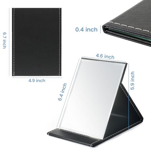 OWLKELA Specchio Pieghevole Portatile da 16 x 12 cm, Specchio per Trucco Compatto Super HD, Specchio da Viaggio in Pelle PU Nera, Specchio da Trucco Autoportante, Specchio da Scrivania Pieghevole