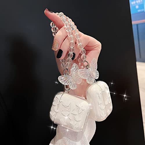 Ownest Compatibile con AirPods 1 Custodia AirPods 2 Custodia Protettiva Fiore Motivo Rosa Trasparente Morbido TPU Antiurto Portachiavi Donna Ragazza Cover per Airpods 2 & 1-Farfalla Bianco