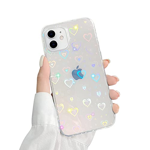 Ownest Compatibile con iPhone 12 Custodia iPhone 12 Pro Custodia Cuore Glitter Trasparente per Donne Morbida Protettiva Sottile TPU Cover per iPhone 12 Cover iPhone 12 Pro -Trasparente