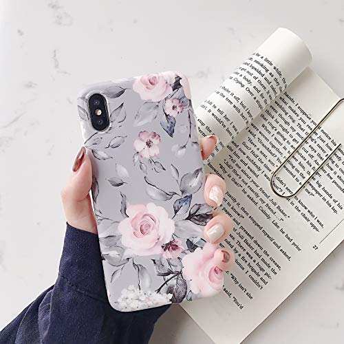 Ownest Compatibile con iPhone XS/X Custodia Fiori Viola Foglie Grigie per Ragazze Donna Foglie con Fiori Motivo Romantico Elegante Morbido TPU Protettiva Cover per iPhone XS/X-Fiori Rosa