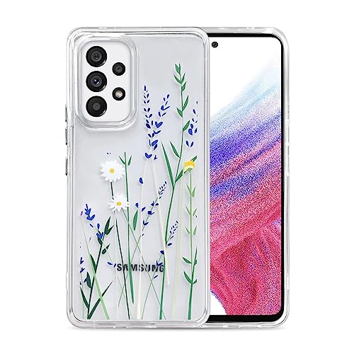 Ownest Compatibile con Samsung Galaxy A53 5G Custodia, Trasparente Moda Carino Animale Drago Cartone Animato Morbido TPU Paraurti Custodia Protettiva Antiurto Cover per Samsung A53 5G-Fiori