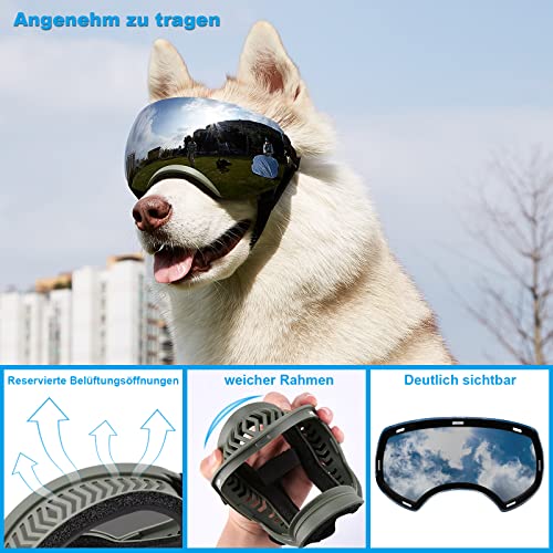 【PROTEGGI GLI OCCHI】: i nostri occhiali per cani possono fornire al tuo cane una visione migliore e garantire che gli occhi del tuo cane siano tenuti lontani dai raggi UV, vento, neve, sporco o polvere. È applicabile a cani di taglia media come Alaskan Malamute, Samoiedo, Pastore Tedesco, Golden Retriever, Labrador e Border Collie.