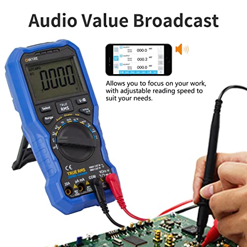 OWON OW18E Multimetro Digitale, Voltmetro Amperometro Ohmmetro 20000 Conteggi True Rms, Schermo Retroilluminato, Bluetooth, Tester Tensione Corrente Resistenza Capacità, Registratore