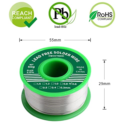 Owootecc Filo di saldatura senza piombo con nucleo di colofonia per saldatura elettrica e fai da te (Sn99,3 Cu0,7/0,6 mm, 50 g)