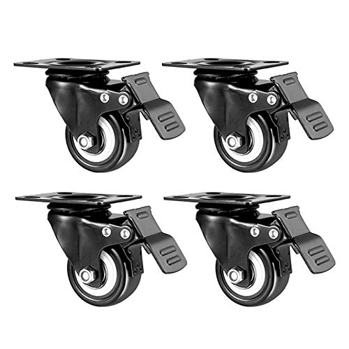 OWUV 40mm Rotelle in Gomma Nera Silenziosa, Rotelle Fisse | Rotelle Girevoli Ruota | Freno | Altezza 60mm | 4 Pz | Carico Max 100kg, Ruote per Mobili Vassoio/Carrello/Lettino/Comodino/Poggiapiedi
