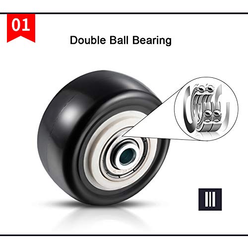 ✪ Materiale: materiale poliuretanico, elevata durezza, resistenza all'usura, antipolvere, silenzioso e sicuro e non danneggia il pavimento. Piastra di montaggio in metallo e cuscinetto a sfere in acciaio al carbonio, rotazione flessibile, stabile e durevole