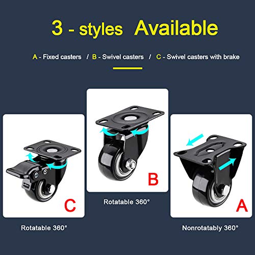 ✪ Specifiche: 3 stili = A - ruote fisse(Non può ruotare di 360 °) / B - ruote piroettanti senza freno / C - ruote piroettanti con freno. Diametro della ruota = 1,5 pollici;
