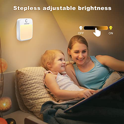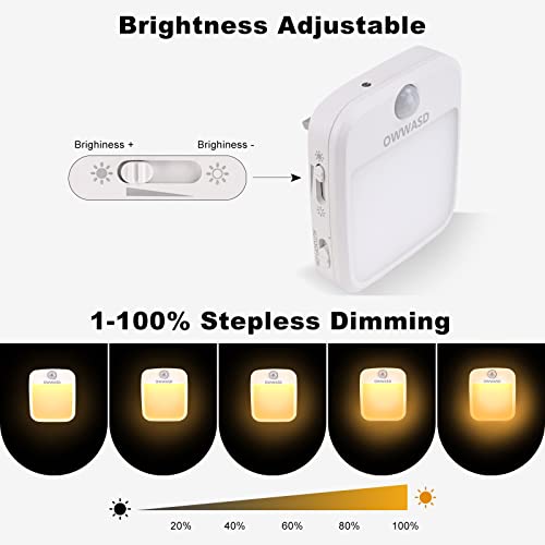 Owwasd Luce Notturna LED,[2 Pezzi] Luce Notturna Bambini 15-100% Stepless Dimming con 3 modalità(Acceso/Auto/Spegnimento), Luce Notturna da Presa per cameretta, camera da letto, scale, corridoio