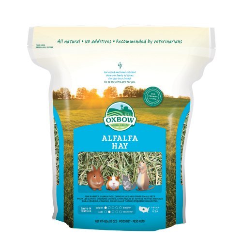 Oxbow Alfalfa Hay 425 gr - Erba medica leguminosa fresca di fattoria, fieno indicato per gli animali in giovane età, femmine gravide e in allattamento (1 sacchetto)