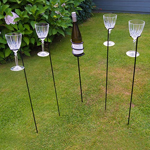 1 x portabottiglia e 4 x portabicchieri inclusi. Altezza supporto bottiglia: 64 cm. Altezza porta bicchieri: 75 cm.