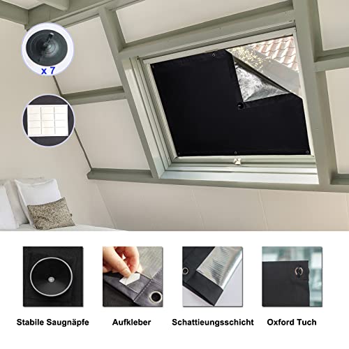 Oxdigi Tenda avvolgibile termica per lucernario senza fori, 100% opaca, con ventose e adesivi, 76 x 115 cm, colore nero, P08/408