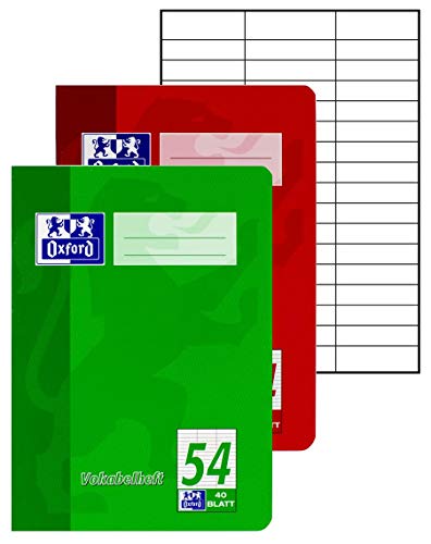 Oxford 100050390 Libretto di vocabolario con sistema di apprendimento, Confezione da 10 in formato A5, 40 fogli, Carta Ottica 90 G/m² Lineatura 54 - 3 colonne A5, Colore: Assortiti