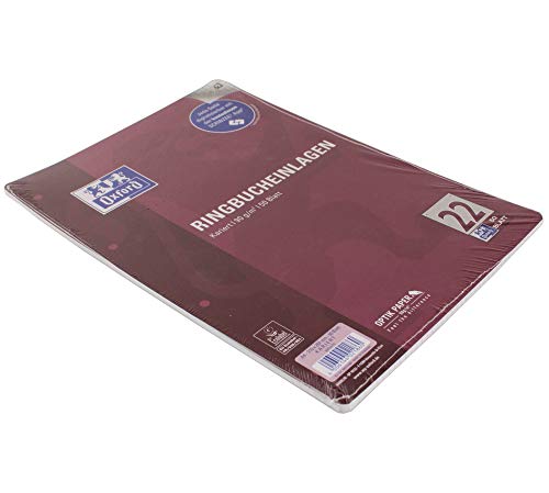 Oxford 400131466 - Fogli per raccoglitore ad anelli, formato A4, 50 fogli, rigatura 22, a quadretti, senza bordo, 90 g/m², carta compatibile con SCRIBZEE