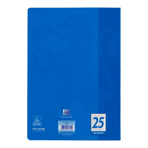 Oxford - Quaderno scolastico A4, a righe con bordo, lineaur 25, 16 fogli, blu, confezione da 5