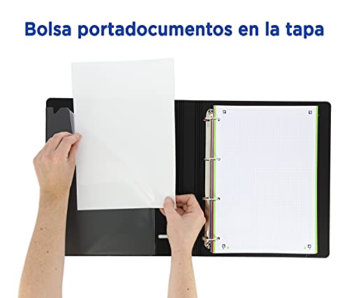 Oxford, Raccoglitore 4 anelli A4+ Plastica Polyfoam con gomma. Include lavagna estraibile, foglio di adesivi, ricambio Quadretti 5 x 5 con 5 fascia Colore. Oxford Live & Go, colore nero