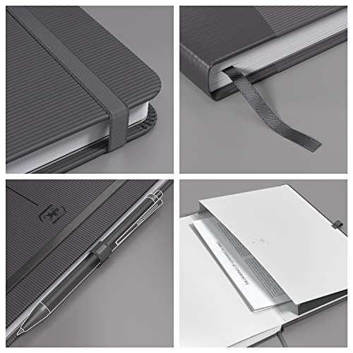 Compatto ed elegante: formato A5 a righe con segnalibro, elastico, tasca pieghevole per foglietti sciolti e passante elastico per penna, adatto come diario di viaggio, agenda o diario di diario