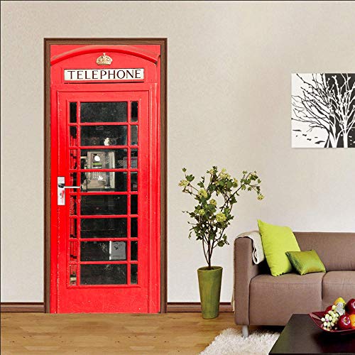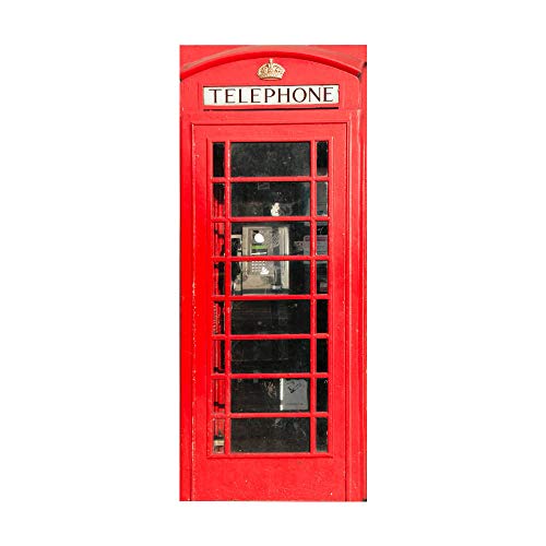 Oxiang 3D Adesivi per Porte Interne Cabina Telefonica Adesivo Murale Decorazione Domestica Adesivo Murale Adesivo d'Arte Camera da Letto Soggiorno Poster Rimovibile Adesivi per Porte -77x200cm