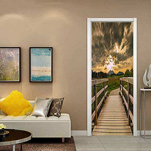Oxiang Adesivi per Porte Interne 3D Ponte di Legno Adesivo Murale Decorazione Domestica Adesivo Camera da Letto Soggiorno Poster Rimovibile Adesivi per Porte -90x200cm