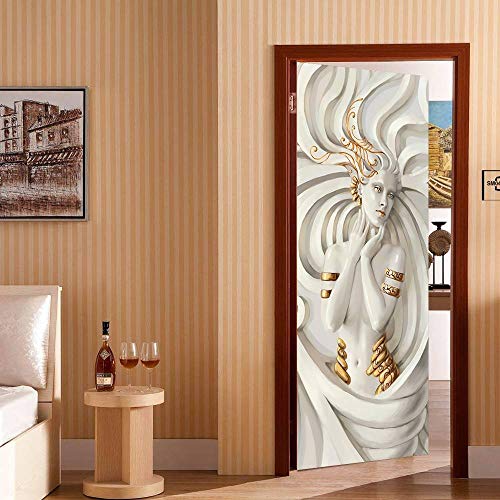 Oxiang Adesivi per Porte Interne 3D Statua Adesivo Murale Decorazione Familiare Adesivo Camera da Letto Bagno Rimovibile Poster Adesivi per Porte-95x215cm