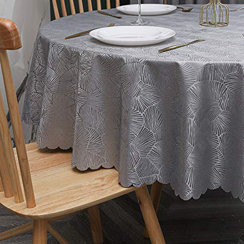 Oxiang Tovaglia PVC Rotonda Antimacchia Ristorante Tovaglie Grigio A Strisce-200cm