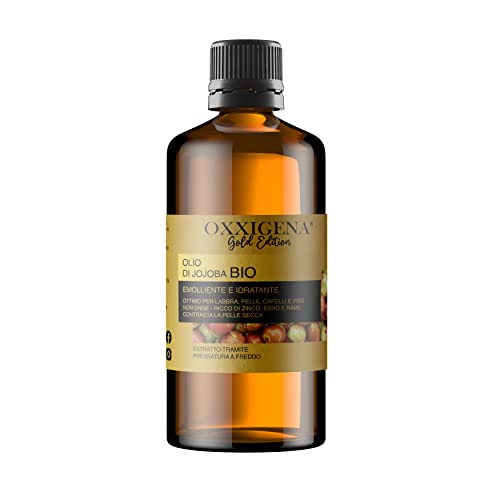 Oxxigena - Olio di Jojoba BIO e Puro al 100% Gold Edition, Confezione da 250 ml, Spremuto a Freddo, Idrata e Nutre in Profondità la Pelle, Dona Luminosità ai Capelli, Vegano e Senza OGM