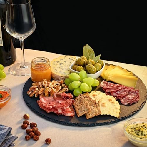 DESIGN VESATILE PE OGNI OCCASIONE: Piatti di ardesia circolari ideali per servire antipasti gourmet, portate principali o dolci, sia a cene formali che a serate informali tra amici e familiari.
