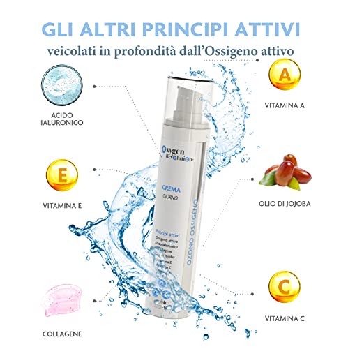 Oxygen Revolution Crema giorno a base di ossigeno-ozono con Ossigeno Attivo, Acido Ialuronico e Olio di Jojoba, idratante, ricco di principi attivi, profonda penetrazione nella pelle, 50ml