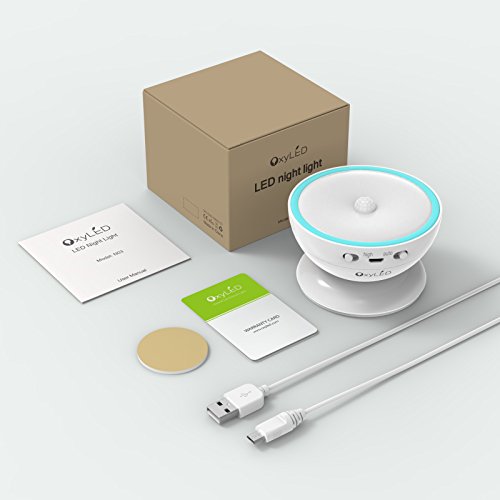 OxyLED Luce Notturna Sensore di Movimento,Batteria Ricaricabile Incorporata,360 Girevole,con Base Magnetica,Luce Bianca-N03