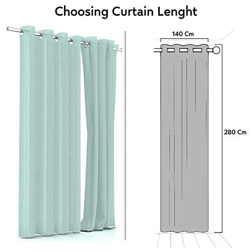 OXYN Tende 2 Pezzi 140x280 cm Trasparenti Effetto Gessato con Paillette Finestre Poliestere per Soggiorno Interni Balconi Elegante Camera da Letto Cameretta Casa Occhielli Anelli (Verde Menta)
