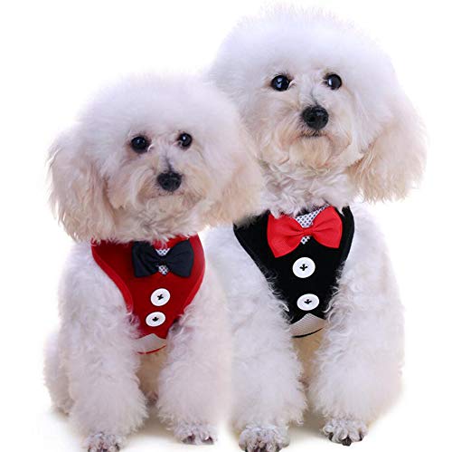 Oyccen 2 Pezzi Cani Pettorina Regolabili Set di Imbracature e Guinzagli per Cane Gatto Formale Vestiti di Bowknot per Animali di Piccola Nero + rosso