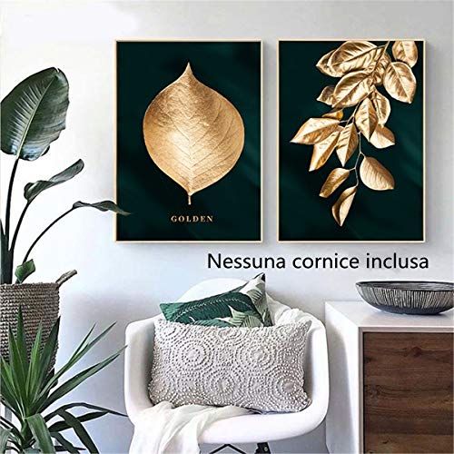OYFFL 3 pezzi Golden Black Leaf Canvas Art Pianta tropicale Stampe botaniche Art Decorazione da parete per la cucina di casa Decorazione della parete del bagno (50*70cm Senza cornice)