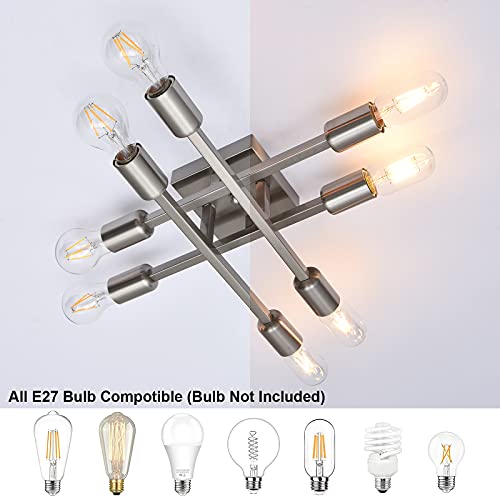 OYIPRO Plafoniera Soffitto, Retro Lampada da Soffitto, Lampadario 8-Luci Nichel Montaggio ad Incasso, E27 Base Metallo, per Cucina Camera da Letto Soggiorno