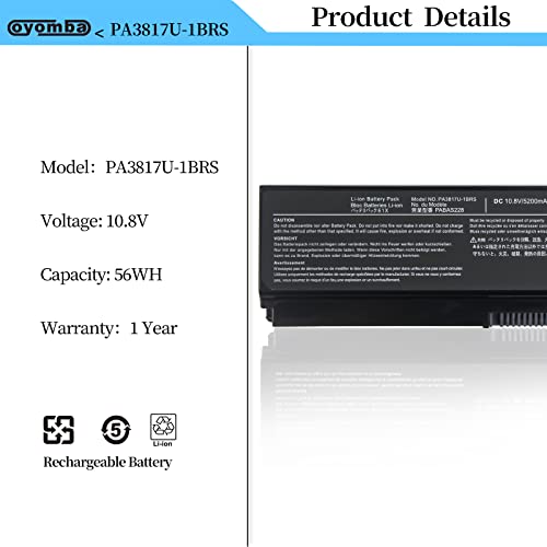 【Codice compatibile】 Compatibile con PA3816U-1BRS PA3817U-1BRS PA3817U-1BAS PA3817 PA3818U-1BRS PA3818U-1BAS PA3817U PA3819U-1BRS PA3819U-1BAS PA3819U Batteria PABAS227 PABAS228 PABAS229 PABAS230.