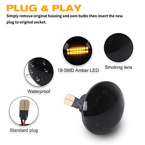 【Installazione semplice】 Questo frecce laterale dinamico utilizza luci di segnalazione laterali a LED dinamiche con prese OE, con plug and play (senza perforazione). Vetro fumé, design raffinato, aspetto unico, anche un buon oggetto decorativo per la tua auto.