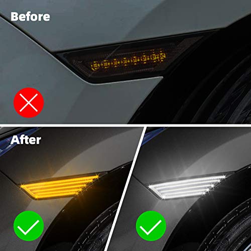 Ottiche ottiche, ogni indicatore luminoso ripetitore laterale ha 138 chip LED SMD 4014 ad alta potenza per una maggiore luminosità con funzioni di commutazione a due colori. Cambia colore diverso tra DRL bianco (luce di marcia diurna) e indicatori laterali dinamici ambrati. Soddisfa le tue diverse esigenze.