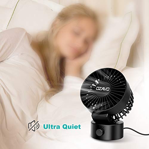 OZAVO Mini Ventilatore USB da Tavolo Scrivania con Supporto e Angolo Regolabile, 2 velocità, Silenzioso Portatile per Casa Ufficio Colore Nero