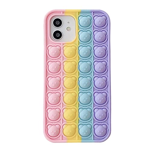 Ozlice - Custodia in silicone per iPhone 6/6s/7/8/Se2020, iPhone 6/6s/7/8 Plus, motivo animato con orso a forma di bolla, giocattolo sensoriale, arcobaleno Pop It Cas (Rainbow,iPhone 6/6s)