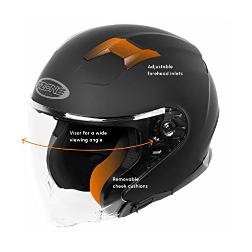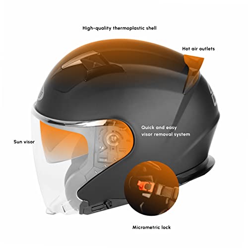 OZONE MOTO Square Casco per Moto Jet Ampio Angolo di visuale Visiera Lunga e Parasole EPS Multi-densità Omologato ECE