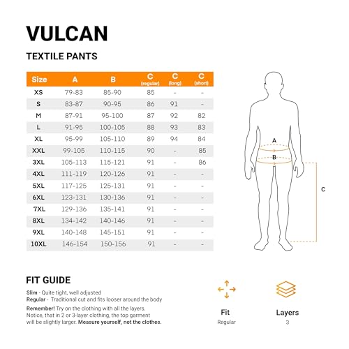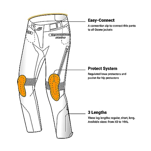 OZONE MOTO Vulcan Pantaloni da Moto Uomo | Tessile | Tre Lunghezze | Membrana e Fodera Termica Rimovibili | Protezioni per Ginocchia | Tasche per Protezioni dell'Anca