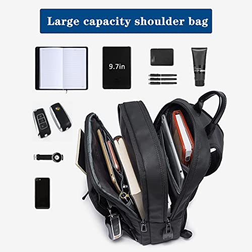 OZUKO Zaino Monospalla Uomo Sling Bag Borsa a Spalla Impermeabile Borse Petto Grande Zaino a tracolla Ricaricabile USB per Trekking/Ciclismo/Viaggio/Sports per 9.7" ipad (Nero 2)