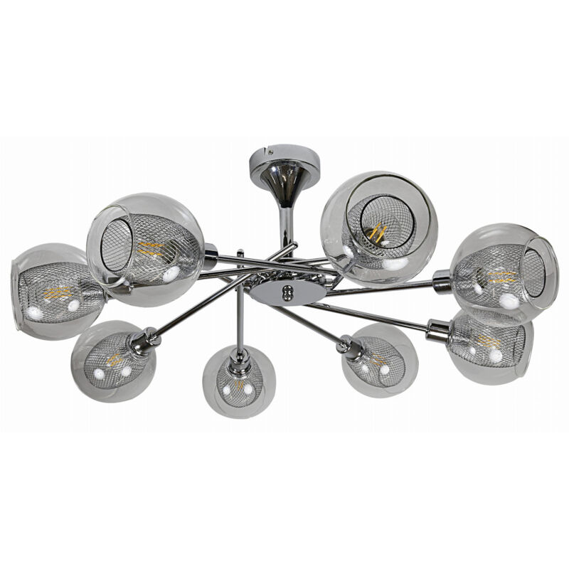 Materiale: paralume in vetro con cestello interno in metallo, base in metallo Colore base: cromo Altezza: 32 Larghezza: 68 Profondità: 68 Dimensioni (altezza/larghezza/profondità): 32x68x68 Peso (netto): 2,25 LED integrati: No Numero sorgenti luminose: 0 Include una sorgente luminosa: No Numero di sorgenti x base: 0xE14