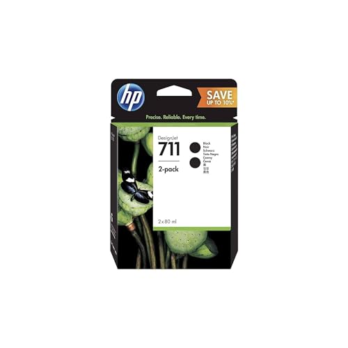 HP 711 P2V31A Multipack, 2 Cartucce Originali HP da 80 ml, Compatibile con le Stampanti HP DesignJet, Nero