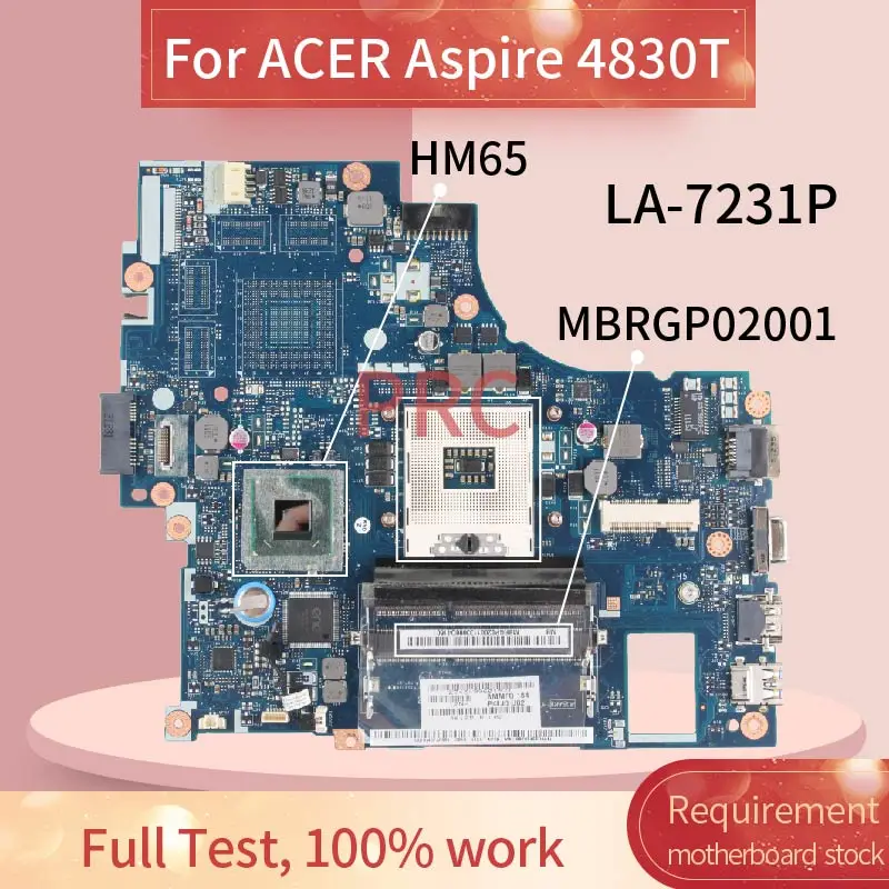 P4LJ0 LA-7231P For ACER Aspire 4830 4830T HM65 Laptop motherboard MBRGP02001 DDR3 Notebook Mainboard