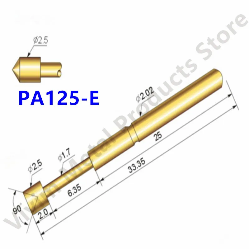 PA125-E Spring Test Probe Pin Metal Brass Test Probe Length 33.35mm Spring Probe 100/PCS