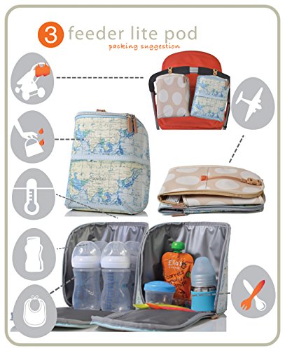 Sistema di organizzazione 4 in 1: l'innovativo sistema di borse fasciatoio PacaPod include una mangiatoia, un fasciatoio, una capsula da viaggio, un fasciatoio e una clip per carrozzina.