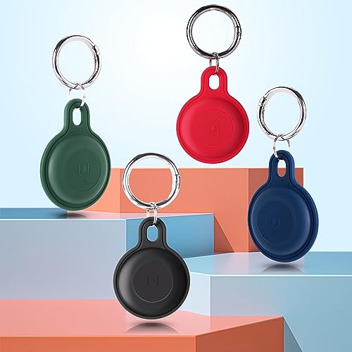 4 Pacchetti Porta Airtag Impermeabile, Fhtase Morbido Silicone Apple Airtag Portachiavi Nascosto per Collare Cane, Bagagli, Portachiavi Tracker, 360 Copertura Completa Protettiva