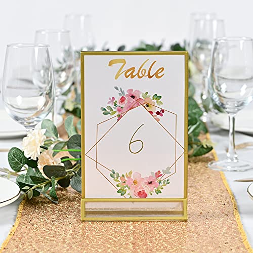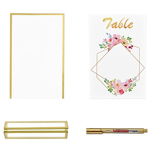 12 pacchetti 10,2 x 15,2 cm Porta dei carri acrilici con bordi dorati, numero di tavolo a doppio lato per matrimoni, supporto dorato, cartellini del ristorante dorato trasparente, supporto per foto