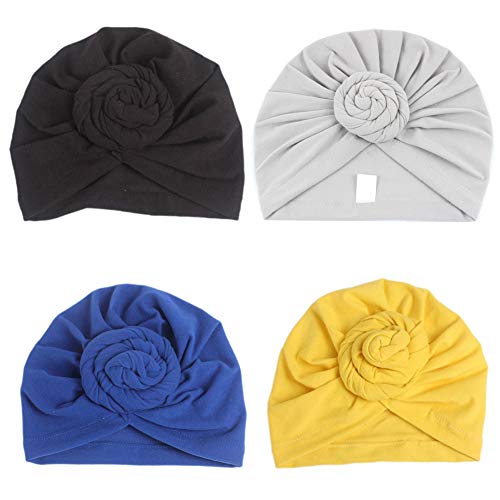 4 pacchetti/6 confezioni da donna turbante modello africano nodo copricapo Beanie pre-legato cofano chemio Cap perdita di capelli cappello, Color004, Taglia unica