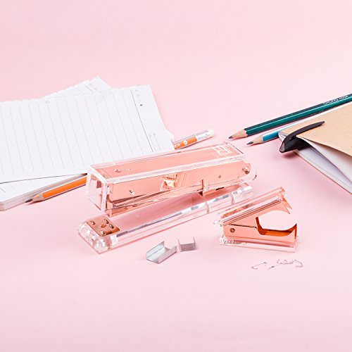 SUPER CUTE: pinzatrice e rimozione graffe si adatta a qualsiasi arredamento di home office. Se vuoi scegliere qualcosa di speciale per il tuo cliente, capo, laureato, collega, il set di graffatrici d'oro sarebbe un'ottima scelta.
